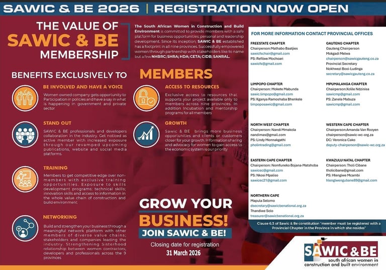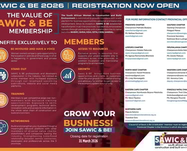 Membership application approval is at the sole discretion of SAWIC& BE’s management structures. (Membership fee payments can only be made upon receipt of a membership confirmation email with a membership number from the Membership Department)
