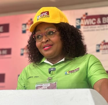 Her leadership journey within SAWIC began in 2003, later serving as Research and Development Chairperson and Gauteng Provincial Chairperson (2016–2019). She has a strong background in stakeholder engagement, project management, and community development, including delivering housing projects as a main contractor.
